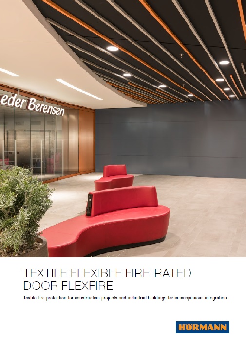 The FlexFire from Hörmann is a textile fire protection curtain for use in construction projects and in the industrial sector. In case of fire, large openings can therefore be closed off within seconds, thus preventing the fire from spreading to adjacent areas of the building.
