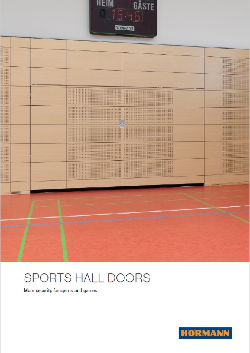 The Hörmann sports hall door complies with the accident prevention regulations "Schools" of the German statutory accident insurance GUV‑V S 1. The door leaf is bounce-resistant in accordance with DIN 18032 and approved by the quot;Forschungs- und Materialprüfungsanstalt für das Bauwesen, Stuttgart (FMPA)". The door frame comprises stable square tubes with horizontal reinforcement struts and has been well prepared for an on-site infill. Counter weights and buffer stops ensure safe and very easy door operation.