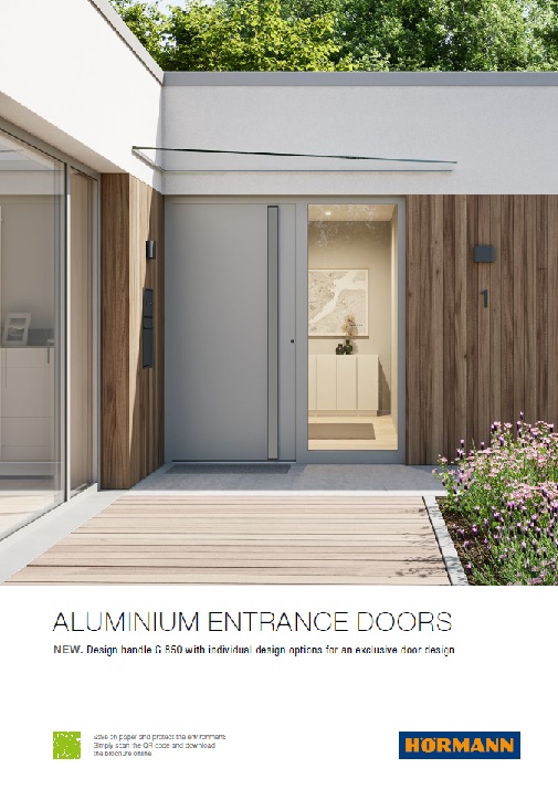 - Elegant door view due to aluminium sheets overlapping the leaf on the exterior and interior and a practically flush-fitting transition between traffic leaf and fixed leaf